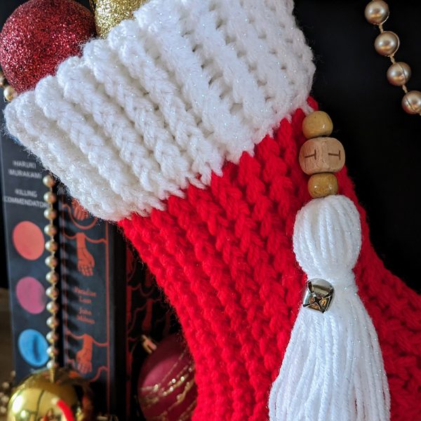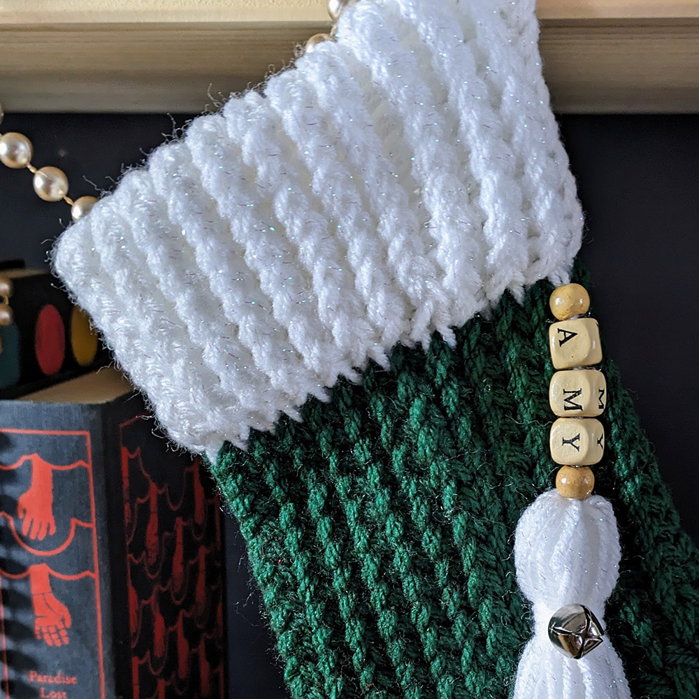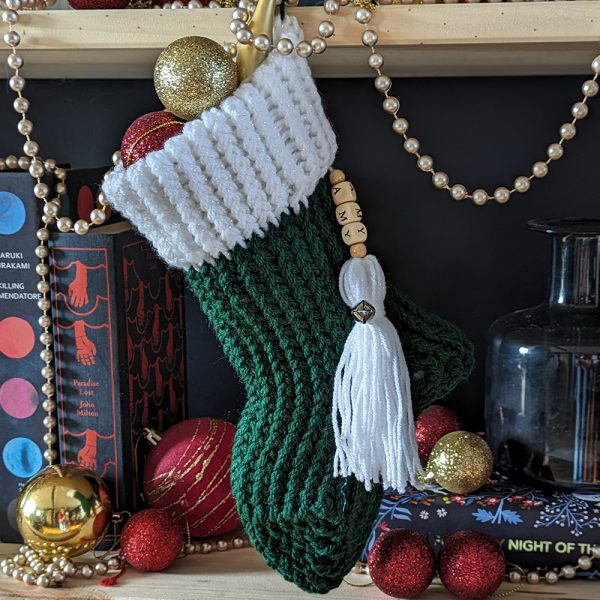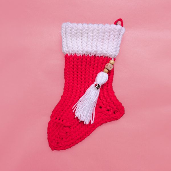 Is it even Christmas without sparkle, this variation of our traditional knitted Christmas stocking embraces sparkle season with a cuff made out of wool with glitter in! Even better, there is also a small bell on the tassel, this really is the ultimate Christmas stocking.